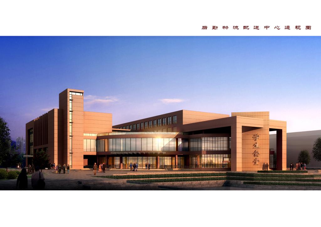 后勤物流配送中心总建筑面积为18304平方米,结构为框架结构,层数为地上五层。主要功能为一层为设备用房和配送中心,二~四层为食堂操作间、附属用房及餐厅,五层为办公室。