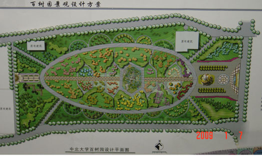 新南区中心公园,又名百树园.其整体以抽象的龟背图案组织游线,龟象征长寿,整个树木园寓以万寿图于此.体现了深厚的文化内涵.该园以树木分类学为根据,以科为单元,集同科的各种在一起种植,以道路流线依次按树木学分类学组织科属分区,并结合景观设计学原理来进行造景艺术.游人可以从中了解到不同种树木生态学上的特点,使植物知识科学化.知识化.信息化.大众化.有意识地对植物景观的示范,不仅使游人感到心旷神怡,而且通过学习和模仿,起到改进生活学习环境的作用,营造出景观优美.自然生态的绿色空间.